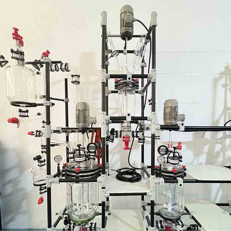 يتيح نظام مفاعل الزجاج المُدمج عمليات تفاعل متعددة في وحدة واحدة. وهو مُجهز بتسخين/تبريد مُغلّف، وتحريك ميكانيكي، وخاصية التفريغ، مما يدعم عمليات التركيب الكيميائي، والتبلور، والتقطير لأغراض البحث أو الإنتاج التجريبي.