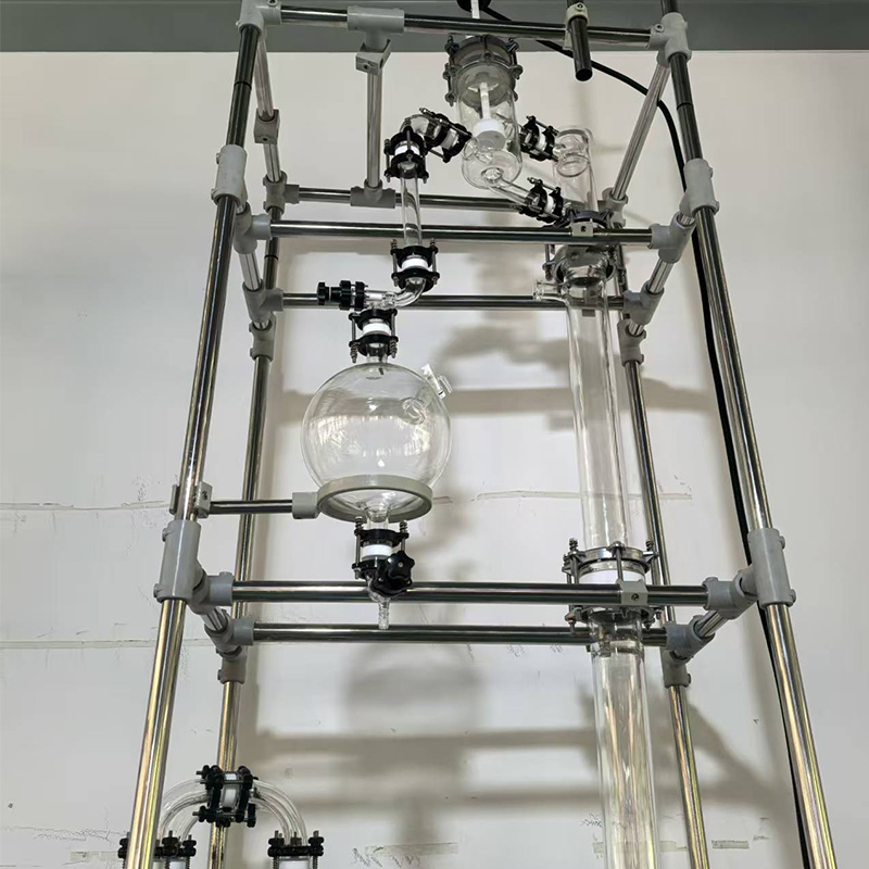 | برج التقطير | برج معبأ متعدد المراحل، يمكن تكديسه حتى 8 أمتار من الزجاج |